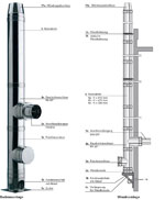 Schiedel ICS ist bei Einsetzen des Dichtringes auch im Überdruckbetrieb bis 200Pa und einer maximalen Abgastemperatur von 200°C einsetzbar. |